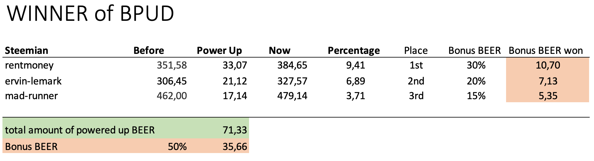 Winners of Power Up Days for Steem and BEER