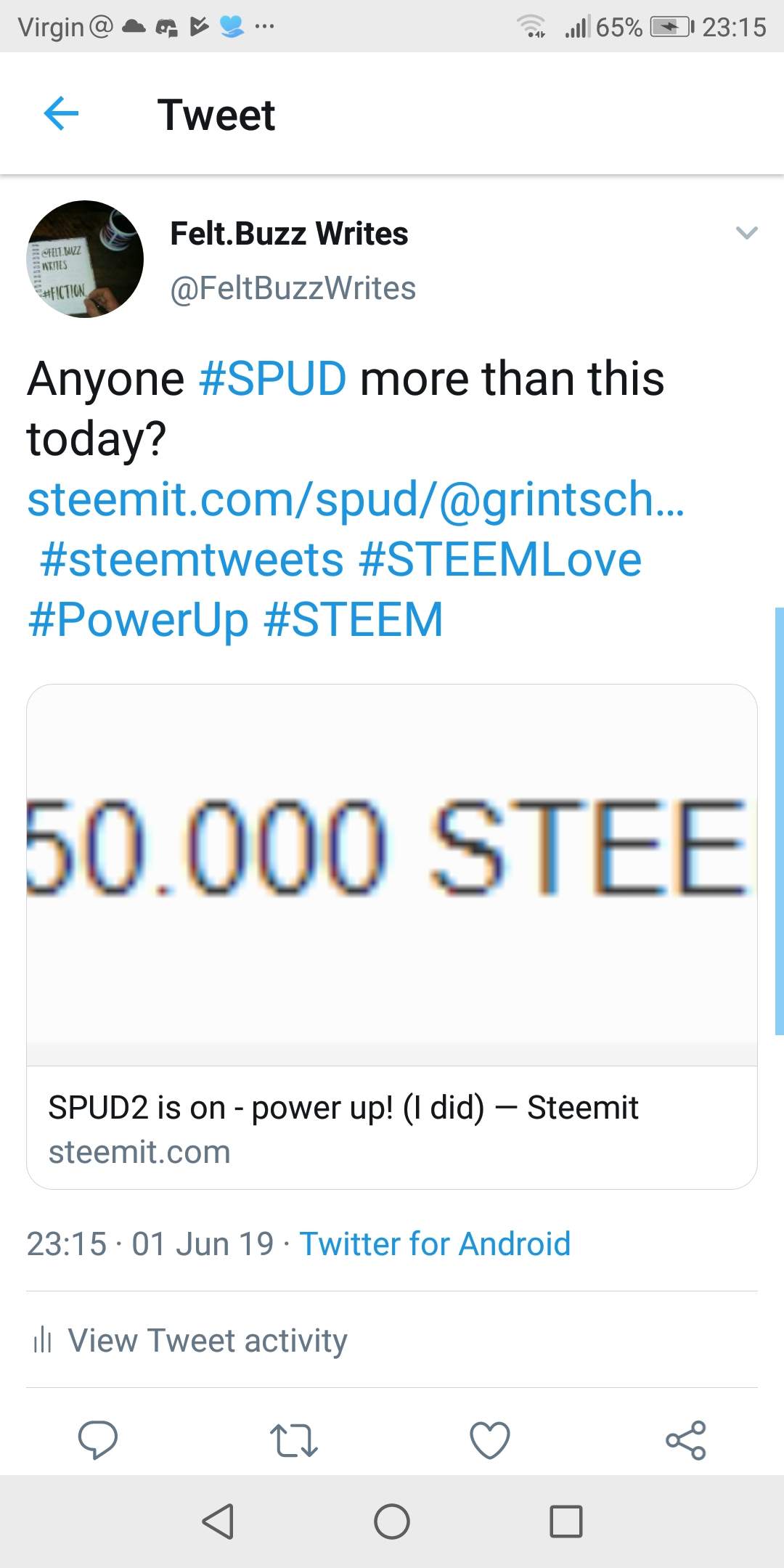 If you don't know what SPUD is - it's Steem Power Up Day! This was brought to us by @streetstyle, so check it out, go buy some Steem and power them up!