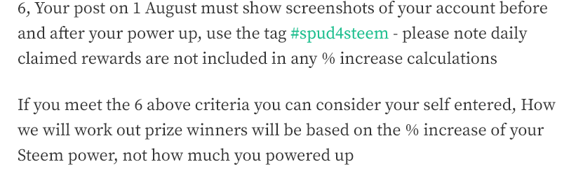 At the end of the day, though,@creativeblue did have the highest % increase & won. While I still disagree with the way he did it, I can accept he was the #1 winner for #SPUD4STEEM August contest. Still, I would like to recommend to @kiwiscanfly to constantly adjust the rules so that all users have a fair chance to win the awards, no matter their background or if they are part of/are supported by an influential group or not. Like with all ideas with not much history behind - you started managing #SPUD4STEEM after the fork, right? - there will be flaws and those flaws need to be taken care of so that the spirit of the contest remains intact. That is my honest opinion.