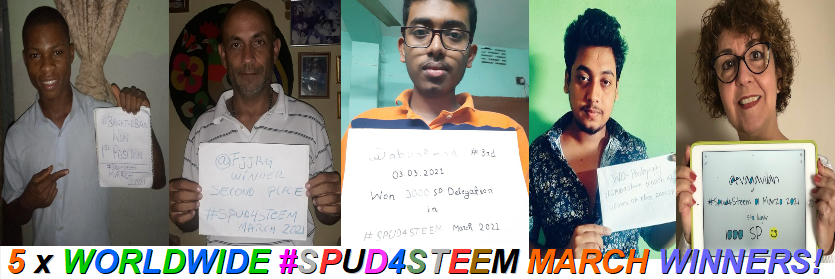 FIVE WORLDWIDE MARCH #SPUD4STEEM WINNERS ๐ฅ๐