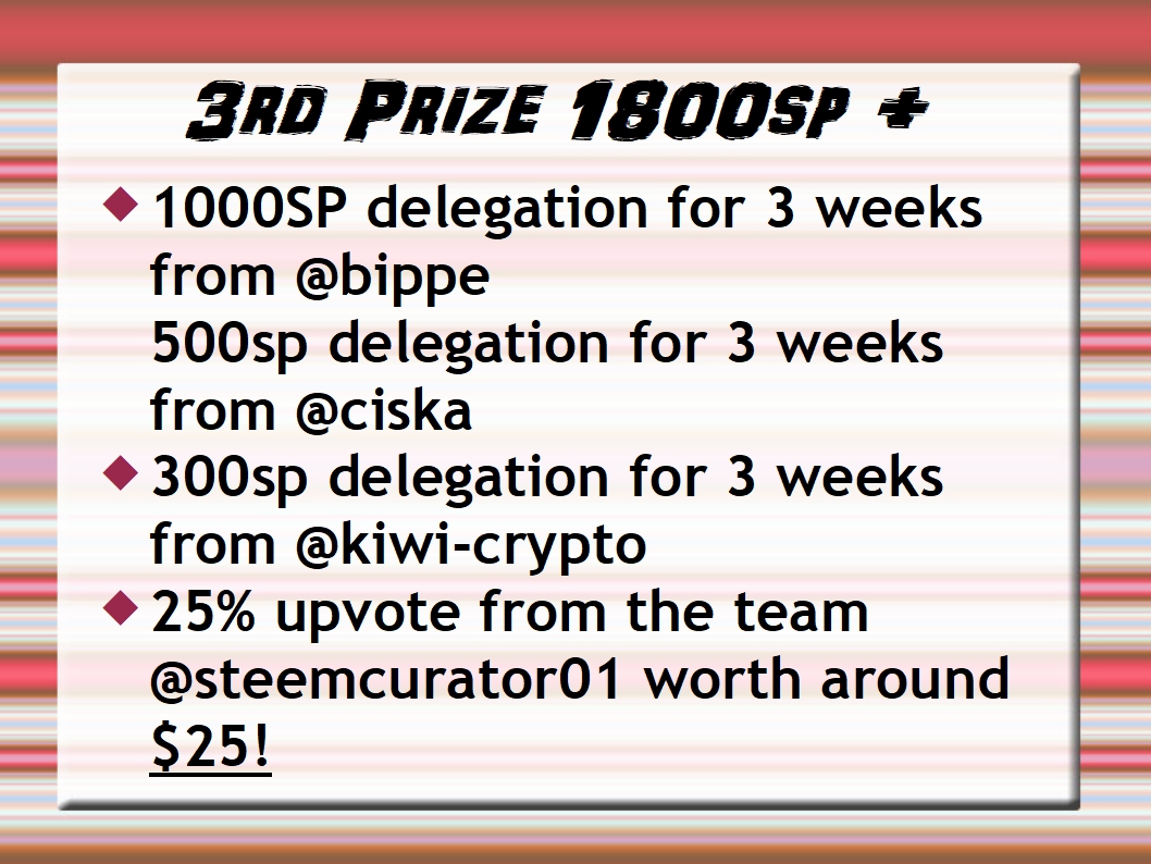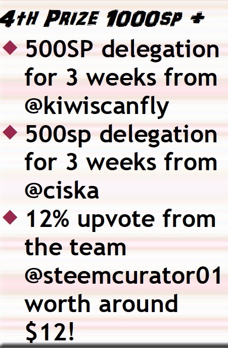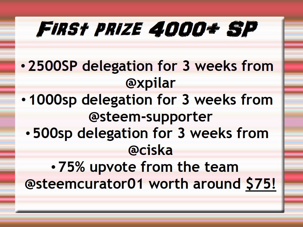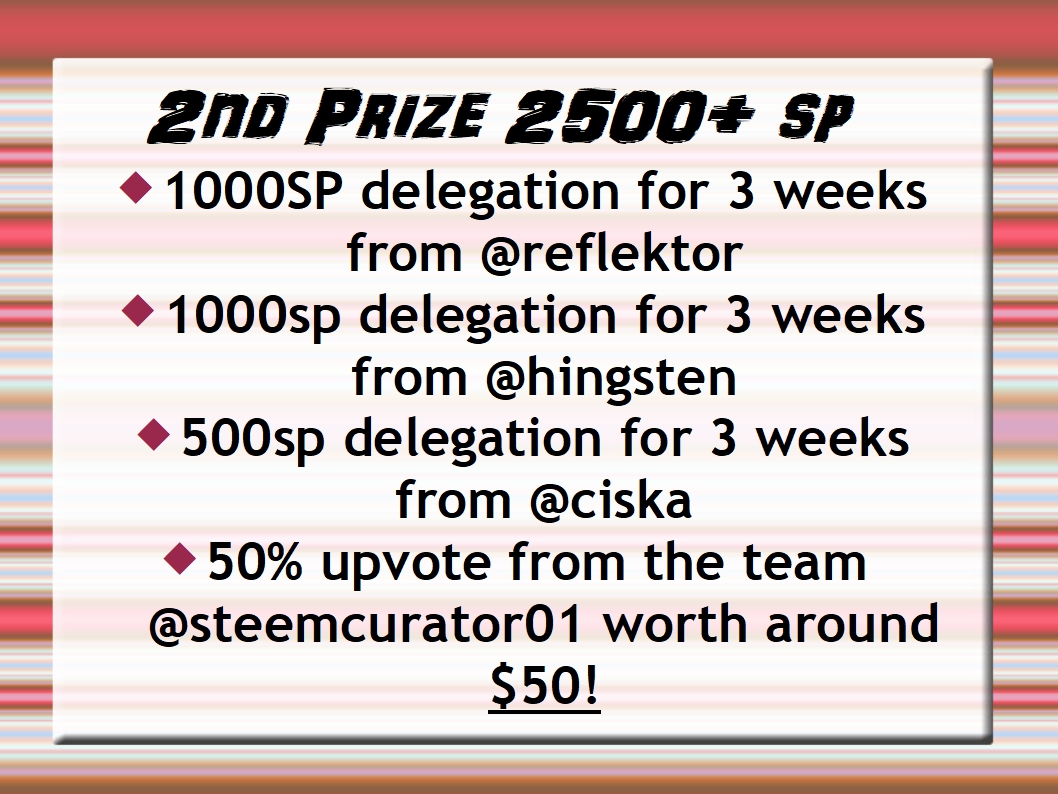 @steemcurator01 here are the posts for you to upvote as per the prize list
