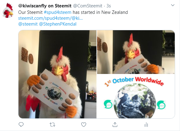 Its Midnight here in New Zealand which means its the 1st of October #spud4steem day 😀, the Chicken has made a return from what he called a holiday and is looking forward to another #spud4steem.