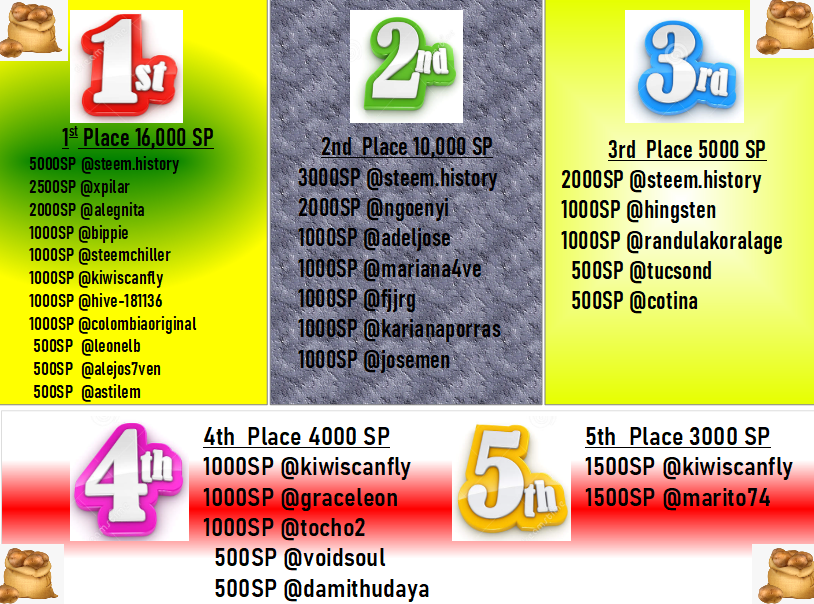 We have an update on our Prize pool which has just increased to a whooping 38,000 Steem power, this has increased due to 2 new sponsors jumping on board.