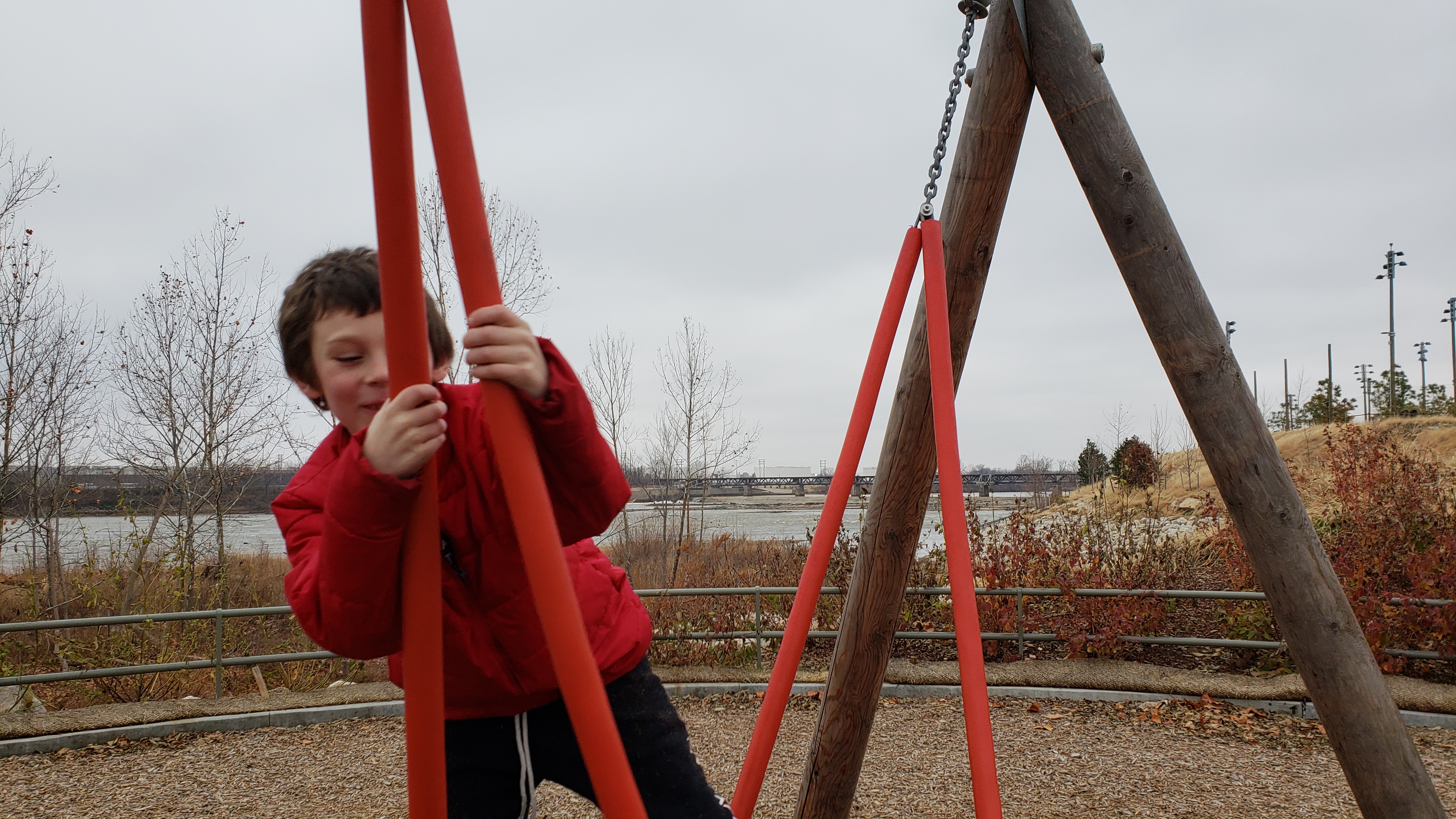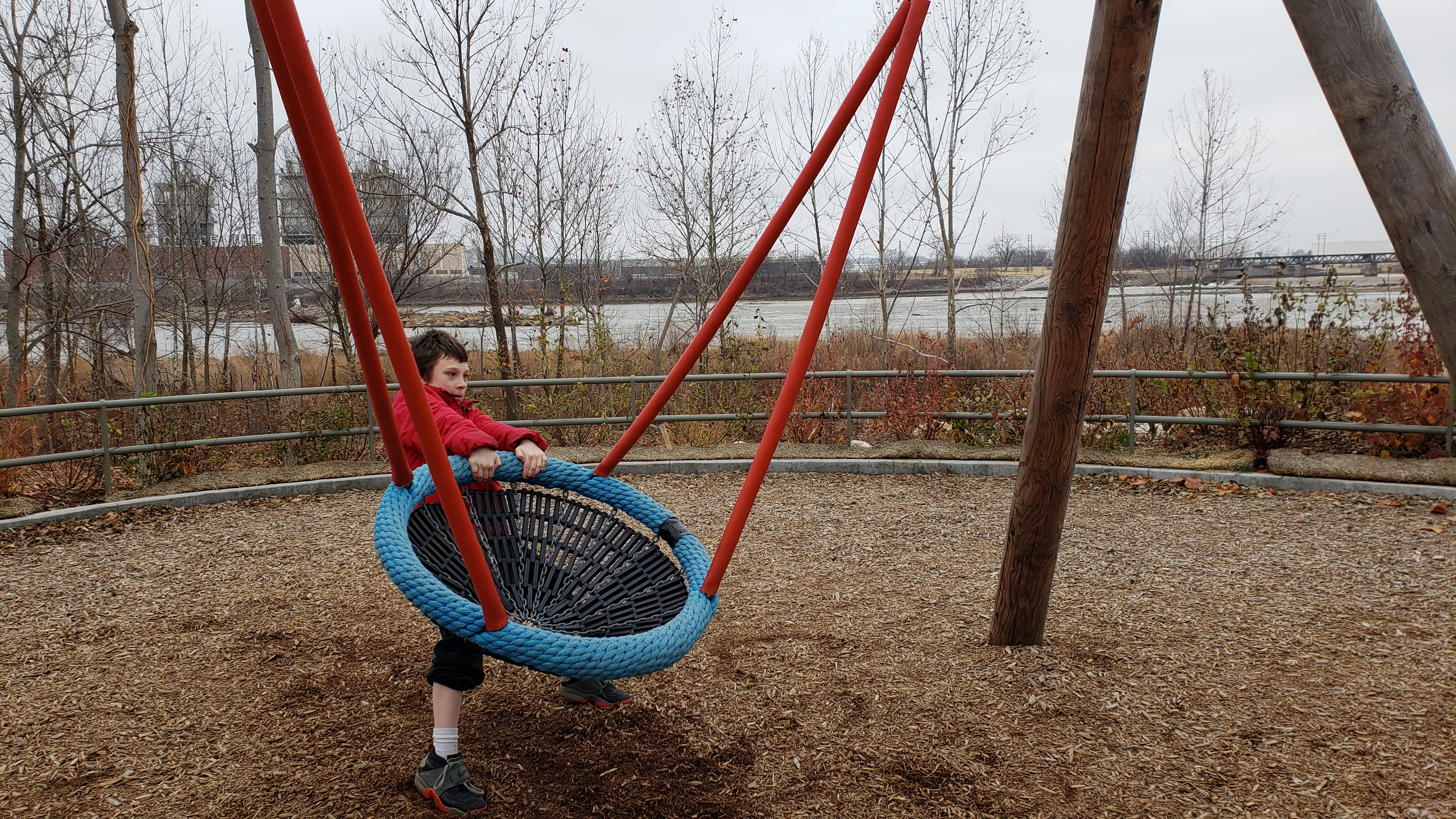 My grandma (I call her Guinny) and I are at the Gathering Place. It is a park that was created a few months ago. It is bigger than your regular park. There are many playgrounds, basketball courts and lots of space where many people can play.