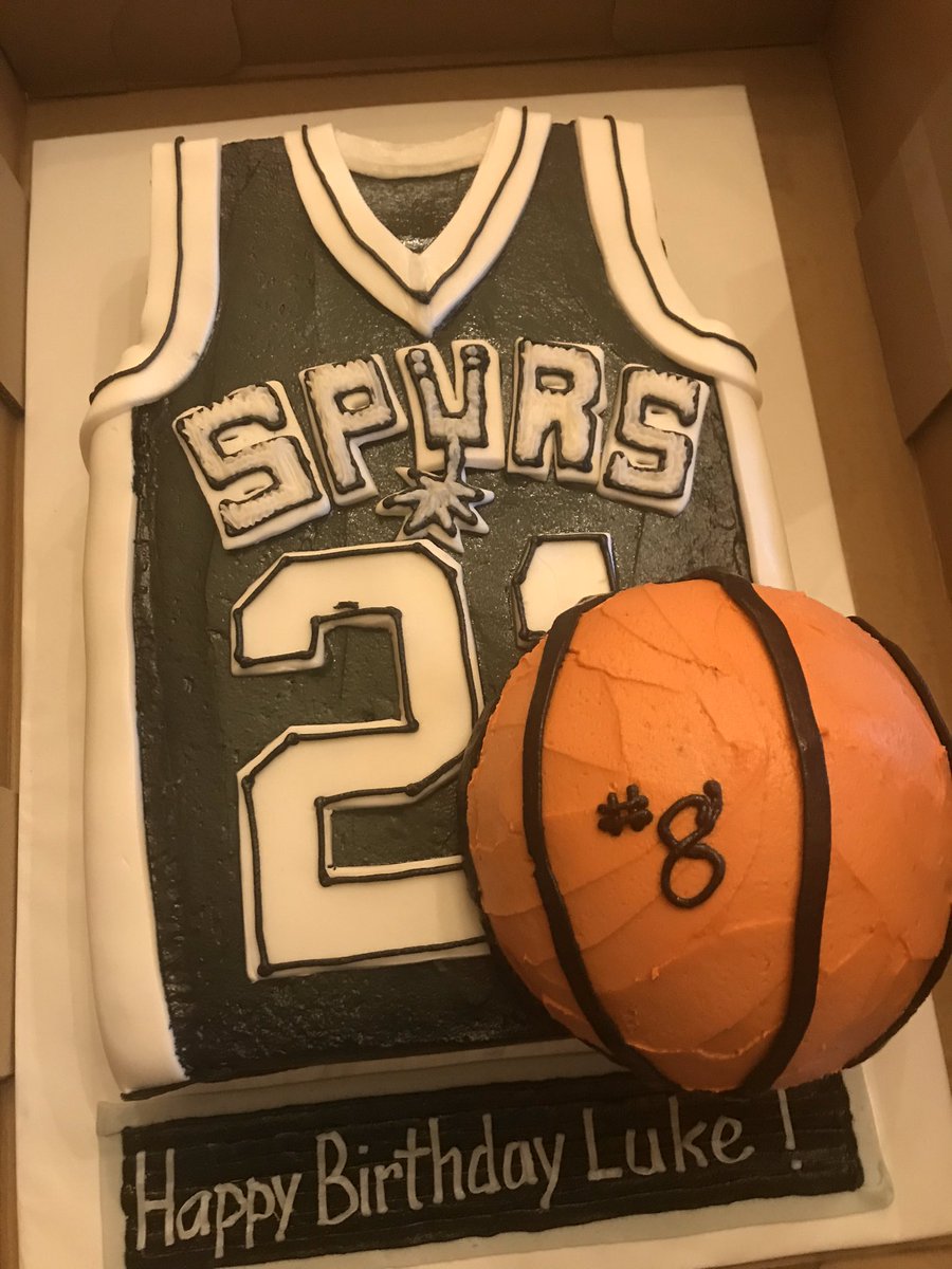 “Hey @spurs Luke celebrated his 8th birthday tonight with a @TimSlamDuncan cake and @DavidtheAdmiral #StartingLineup. He’ll also be representing at school this fall! #GoSpursGo”