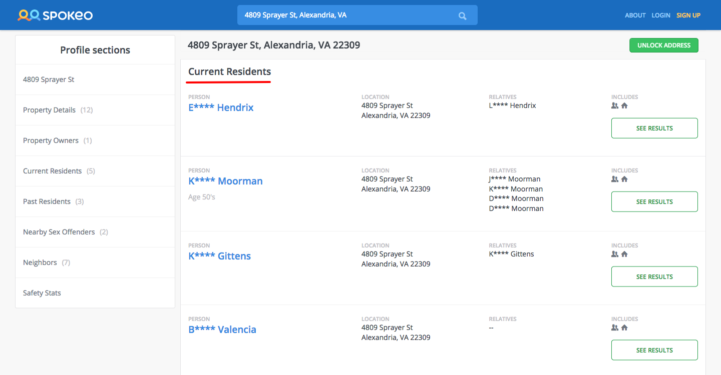- There are also a number of names related to the home as 'current residents' / at least 5 different names atm