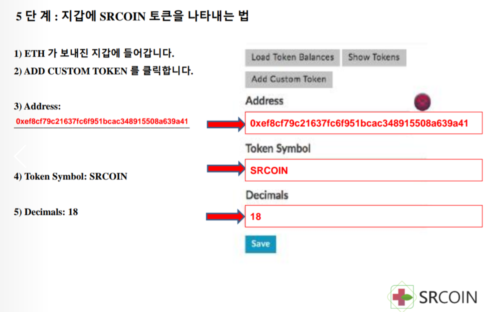 - 마이이더웰렛에 SRCOIN에 대한 커스텀추가 설정 합니다