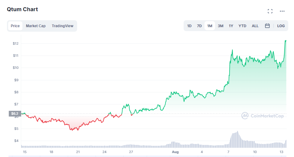 QTUM , A project which I believe every investor should allocate a certain percentage. Of course when considering the project concept and it's solid growth it will be a great long term investment. But let's take a look at what happened over last months. It touched a bottom at around 5$ last july. And here again growing solidly and now trading around 12$. 100% growth within last 3 weeks. Within last 24 hours , it went up from 19% and still looking very solid. Clearly following Btc but will it pass 25$ this time ?