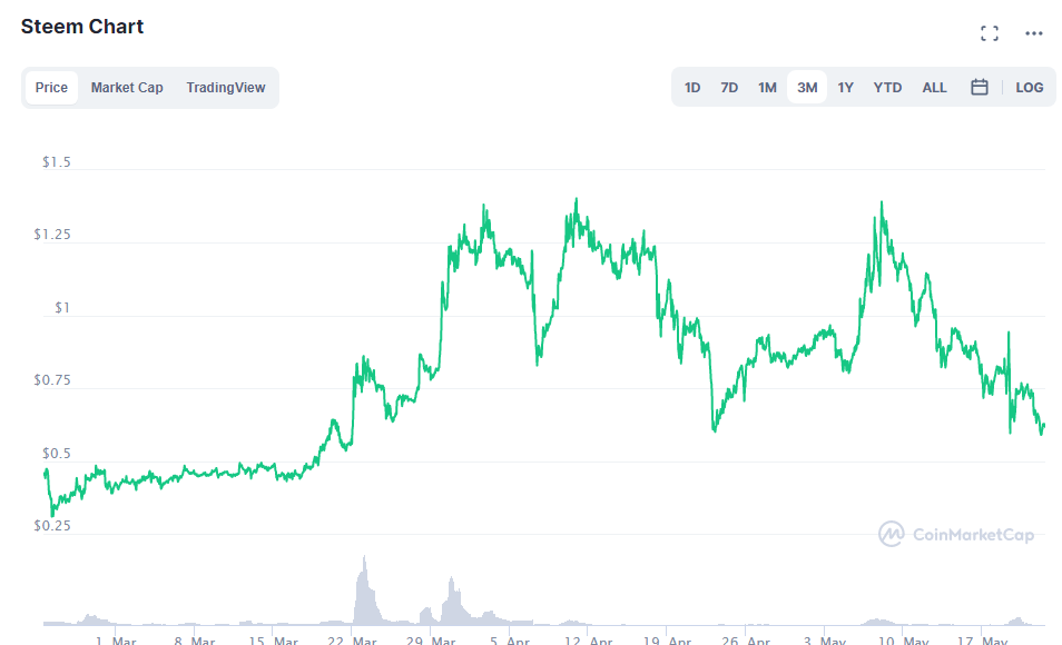 Crypto market went down as the bitcoin dropped to 30k showing all red all over the market. As almost all the currencies steem price dropped less than 0.6$ and currently we are in a very similar position 3 months ago Check . Todays 24 hour steem trading volume is around 7 billion and steem price dropped 10% in last 24 hours and 30 % within last week. As we all can remembers steem reached it all time high $8.80 in 2018 , January , now all of us have the question how steem price will behave with this current bearish market. If Btc continuous to drop ( Effect of china ban and Tesla and Elons more tweets or etc) can steem hold this price ?