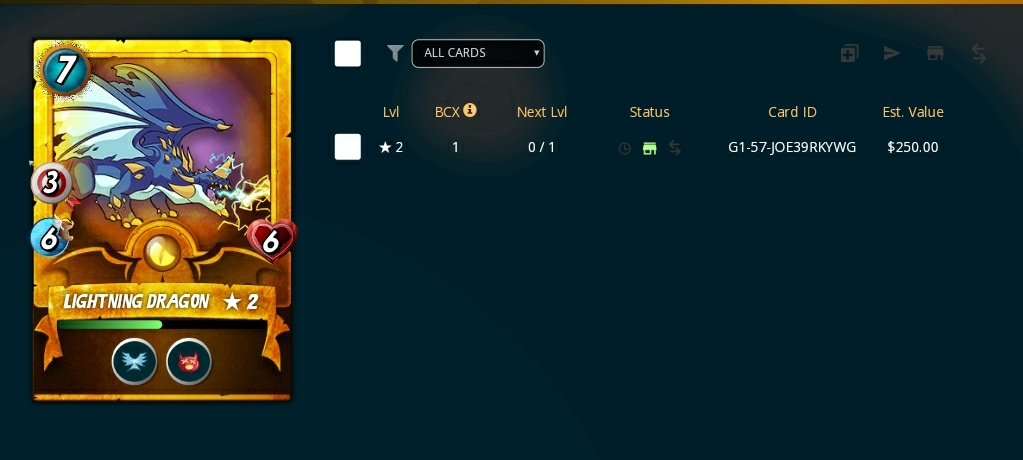 So I have decided to sell my Legendary Gold Dragon to raise some funds to invest in a new token by some of the well known names behind #steemsilvergold the price is $50 under the market value of the nearest card for sale.