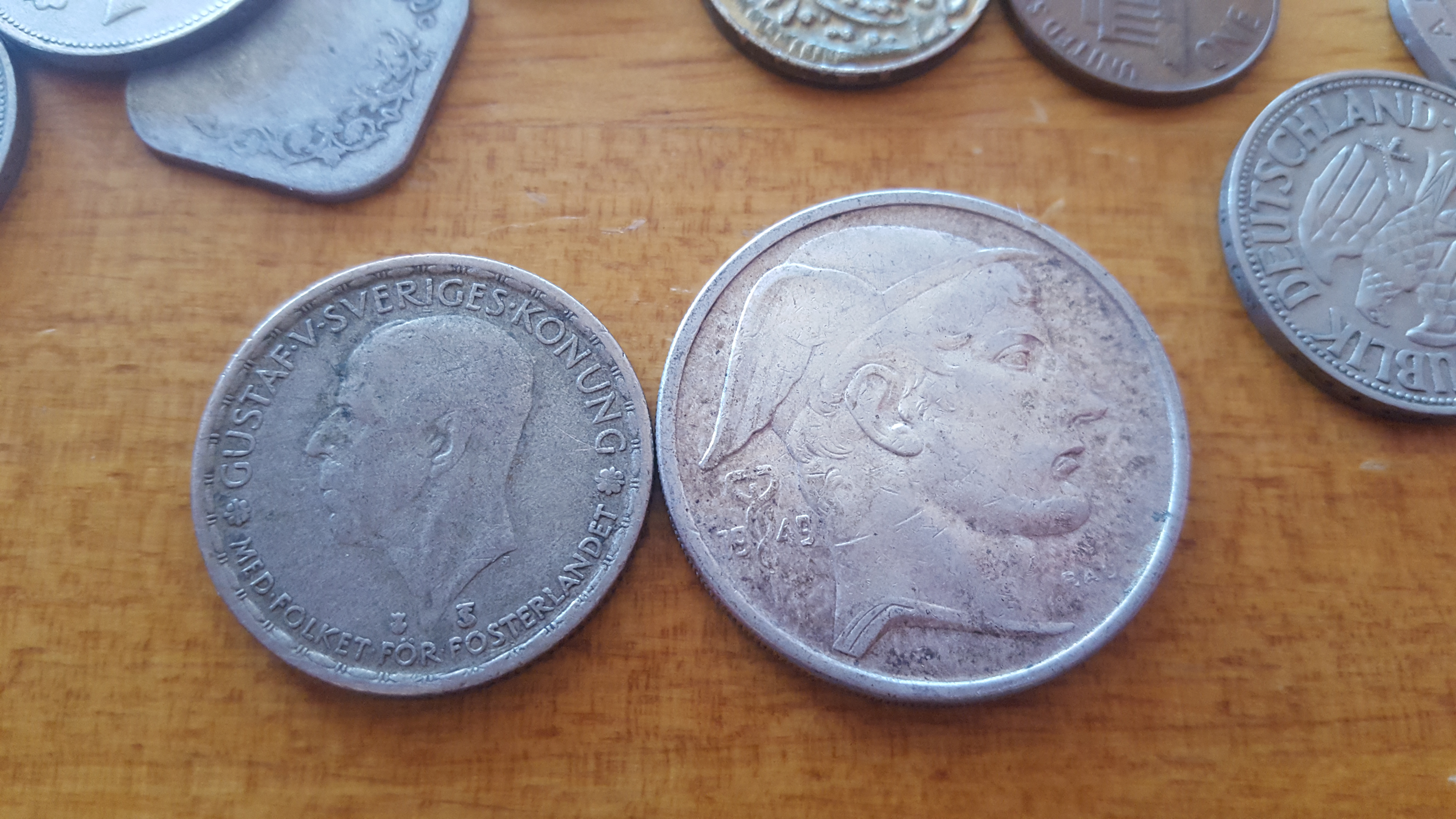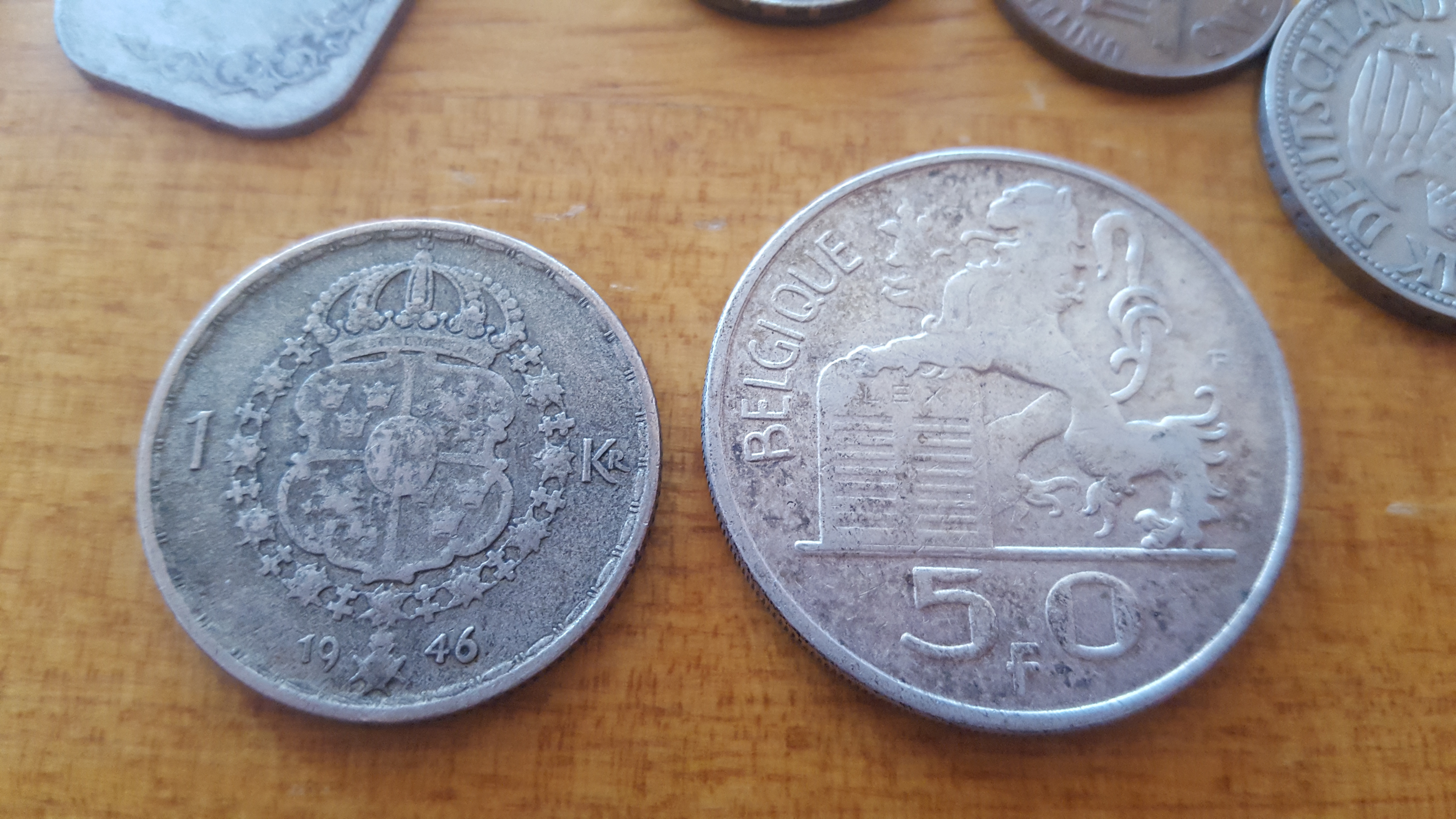 Here is the two silver coins from the mini haul, a Swedish 1 krona and a Belgium 50 Franc
