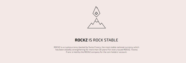 With its stability, ROCKZ platform and cooperation allows and enables all traders, investors in cryptocurrency exchange into the token. For any ROCKZ token issued, the firm reserve a Swiss franc (CHF)