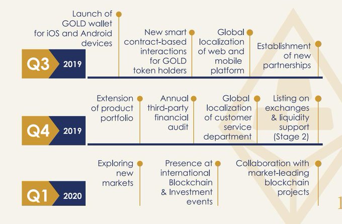 Clients can send tokens anyplace on the planet, without agonizing over unpredictable exchange expenses, since all exchanges are free. Digitization through GOLD Token enables clients to purchase physical gold inclusion, which would then be able to be utilized to ensure against poor economic situations. With a GOLD Token, the client purchases inclusion in genuine gold put away by the organization in a sheltered vault. All physical gold is carefully protected and stored. With Digital Gold, clients don't need to think about neighborhood business hours, since this administration is an accessible day in and day out. Liquidity is subsequently accessible on-request, and the conversion scale consistently coordinates the present gold market cost. GOLD Token permit physical responsibility for while staying private. GOLD Token have been intended to go about as Stablecoin, pegged at the cost of gold. Concerning Stablecoin, they are often linked to different sources or monetary standards but additionally provided. GOLD Token will be perfect with ERC-20 which depend legitimately on the Ethereum blockchain. That implies clients can hope to exploit every one of the advantages related with the Ethereum blockchain, including moment exchanges, unchanging nature, subsidize security, programmed notes, and shrewd agreement capacities.