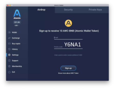 Through Atomic Wallet coin airdrop campaign you will receive 10 AWC for registration + 5 AWC for each referral friend with your promo code🤑