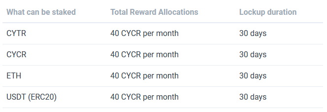 As we've read, this token has a good price and had a big volume-trade on a exchanges, as we've know tho that the staking was always made a pasif income, so why you wouldn't try staking CYCR or CYTR on this platform?