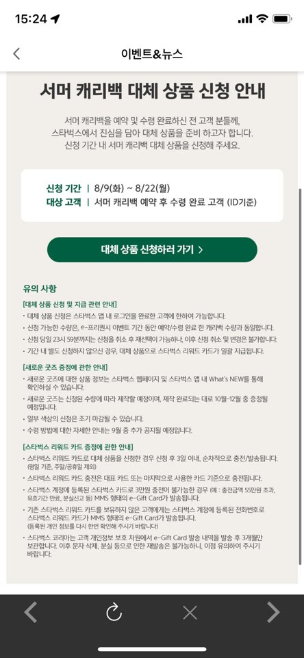 그리고 서머 캐리백 대체 굿즈 신청이 나왔습니다.