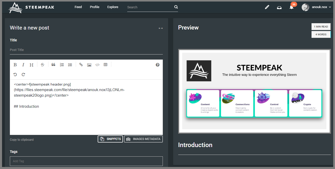 Today I'm going to review Steempeak, the first thing I noticed after opening the website, is the great design and layout. I was actually quite excited to start trying all these extra options Steempeak has to offer. I will try to point out as many advantages as possible, but I'm quite confident that It's possible that I missed a few features when I'm done with my review. The only advice I can give in that case, is to try Steempeak out yourself. You will probably be just as surprised as I was with all the extra features you find there. Let's have a look at my personal experiences together with screenshots to show you what I'm talking about.