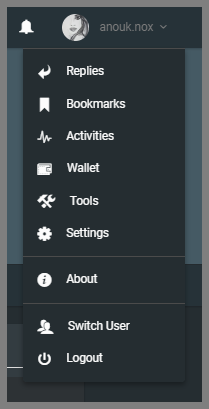 You can find the shortcuts to the most important (and probably most used) features. But let's not forget to mention the option to switch user in this dropdown menu. I think quite a few people have a personal account plus an alt account that they might be using for one of their projects, and I always think it's pretty annoying to switch accounts. Using Steempeak, you can now easily switch accounts by using Steemconnect. Awesome!