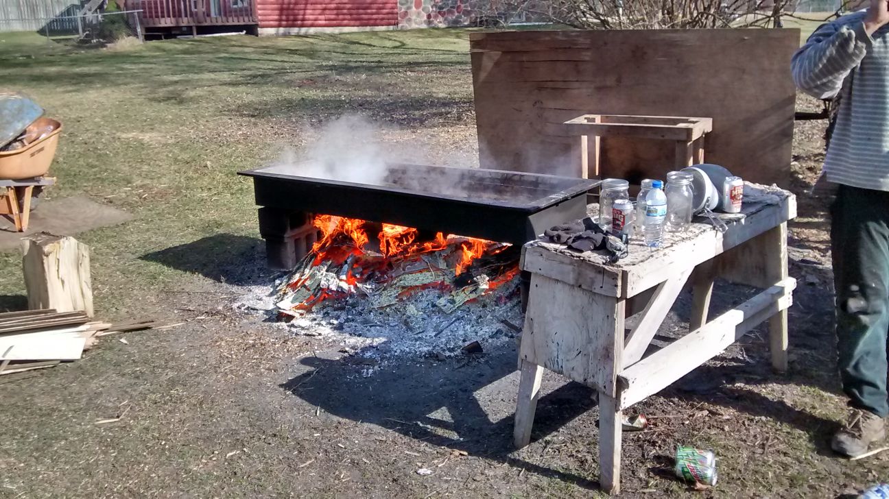 This is very cool. I'd love to see/read more what's going on with the trees, buckets, and what's over the fire. I'm assuming maple syrup, but other than that I'm clueless. Do you already have a post on this?
