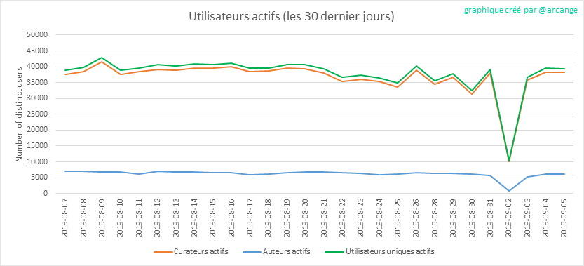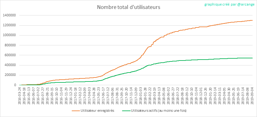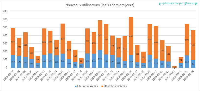 Attention: ce graphique est un peu dynamique! Un utilisateur peut s'inscrire un jour et ne devenir actif que quelques jours plus tard. Par conséquent, le nombre d'utilisateurs actifs à une date donnée peut varier d'un jour à l'autre.