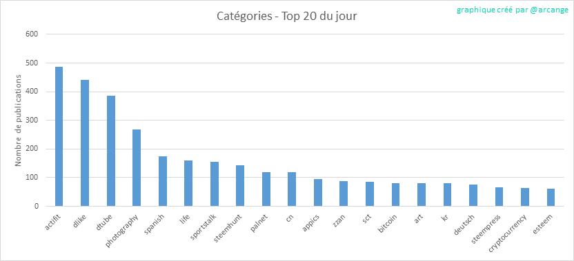 Ce graphique montre les catégories les plus utilisées pour les publications ce dernier jour.
