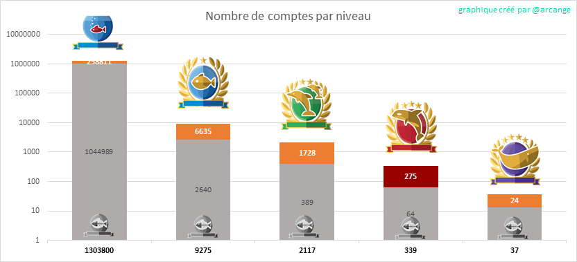 La partie grise de chaque colonne indique le nombre de comptes inactifs (voir la définition d'inactif ci-dessus).