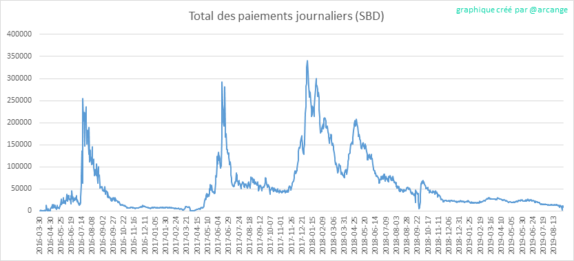Ces graphiques montrent le total des paiements distribués (publications et commentaires) pour chaque jour.
