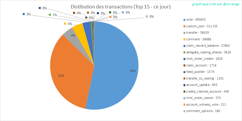 Ce graphique montre la répartition des 15 principaux types de transactions par nombre d'opérations effectuées sur la blockchain.