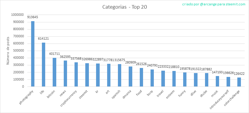 Este gráfico mostra as tag’s mais utilizadas para publicar postagens, desde o inicio do funcionamento da blockchain.