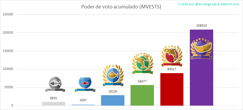 Este gráfico mostra a distribuição cumulativa de poder de voto. Assim podemos ver o total de poder de voto de cada level.