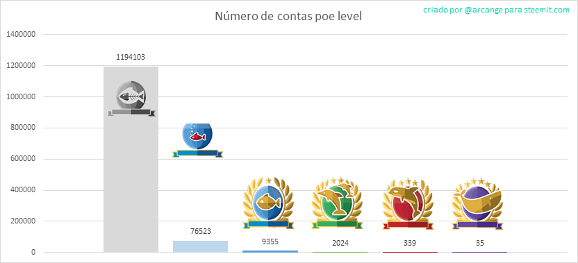Este gráfico mostra o número de usuários de acordo com seu poder de voto (isso inclui os novos "inativos" e os "Red Fish" - cheque o blog @steemitboard para maiores informações sobre isso).