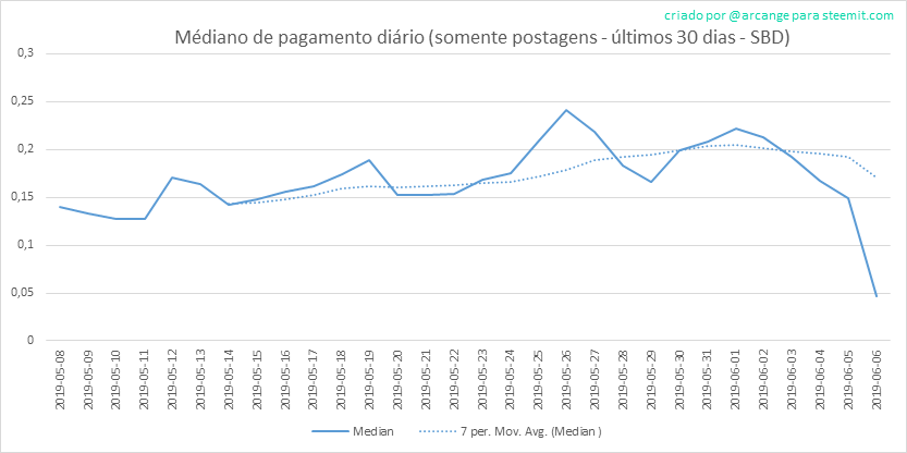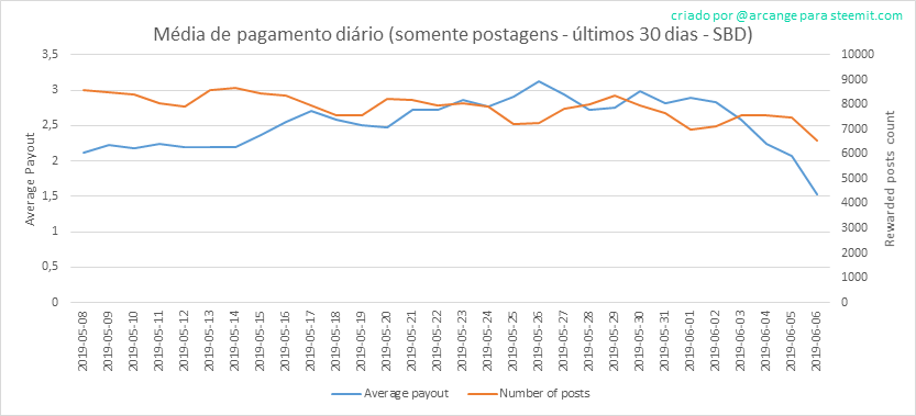 Este gráfico mostra a média de pagamentos por post nos últimos 30 dias.