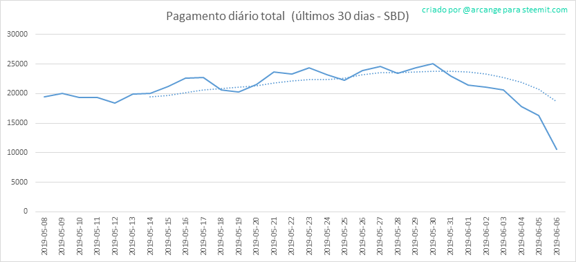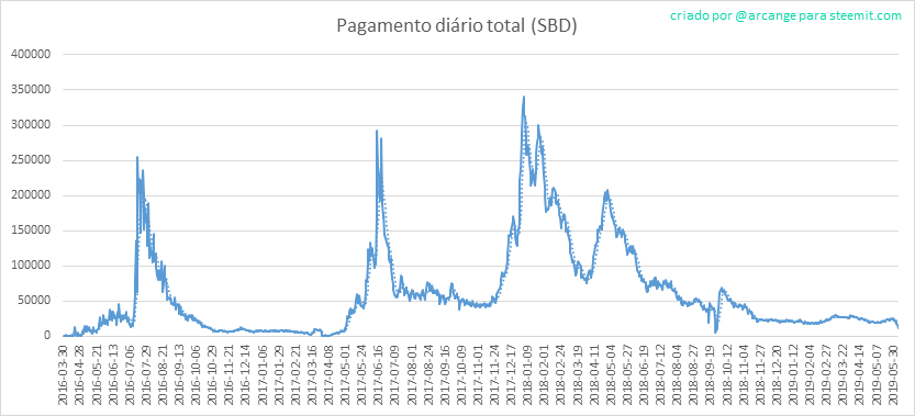 Este gráfico mostra o total de distribuicao de pagamentos (posts e comentários) por cada dia.