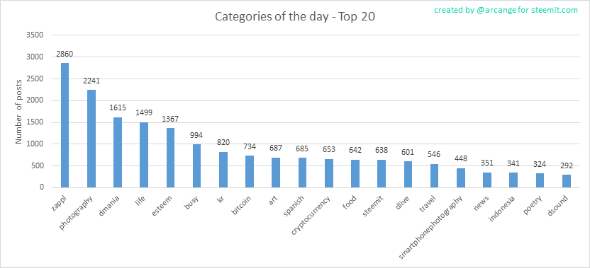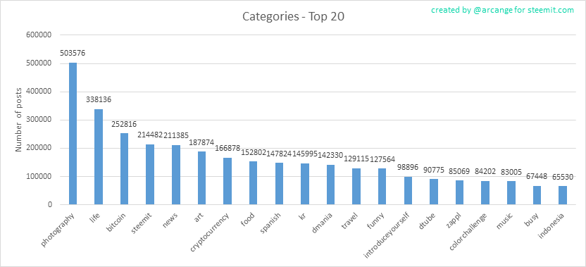 This graph shows the tag has been the most used for publishing posts for the whole blockchain lifetime.