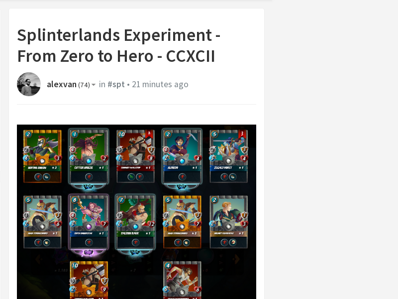 Follow me to vote @alexvan-Splinterlands Experiment - From Zero to Hero - CCXCII