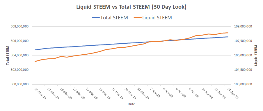 This is a historical graph of both Total STEEM and Liquid STEEM supply