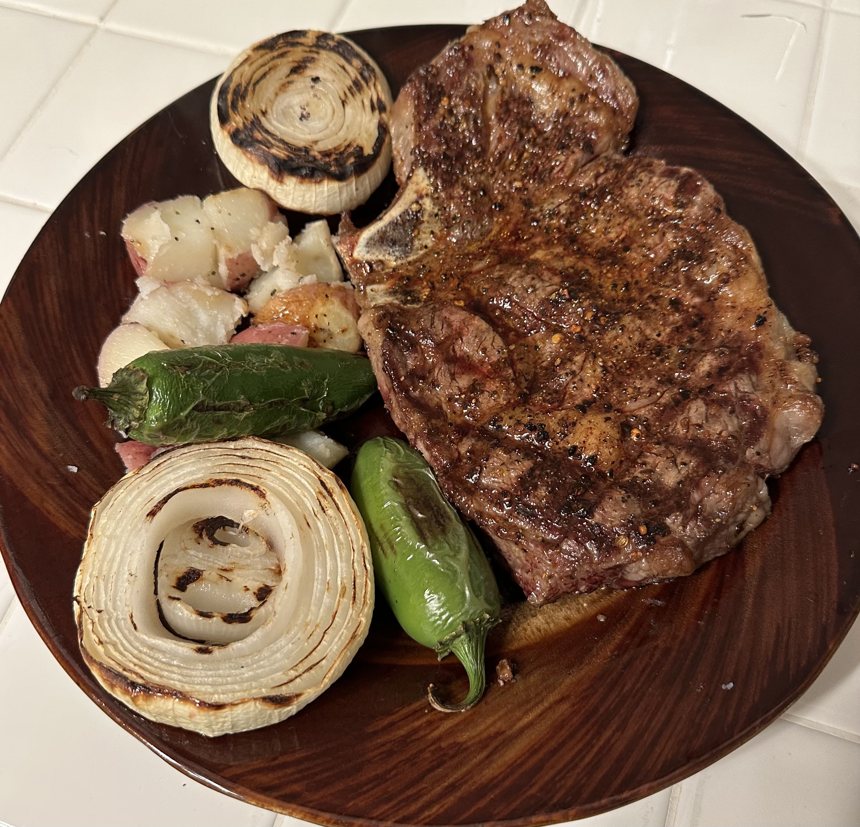 I paired this bone-in ribeye with jalapeños, onions and potatoes - so delicious! I am feeling energized already!