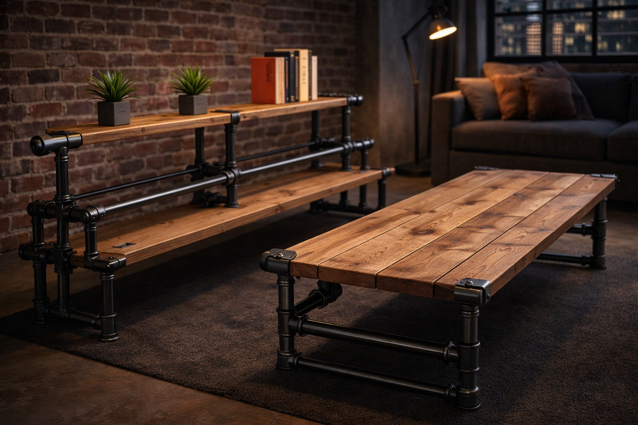 В жилом пространстве мебель на основе стальных труб может смотреться удивительно уютно. Секрет в правильном сочетании фактур. Металл прекрасно работает рядом с деревом, стеклом, текстилем, камнем и даже мягкой обивкой. Например, журнальный столик с тонким металлическим основанием и деревянной столешницей делает гостиную более стильной и собранной. Открытые полки на таком каркасе добавляют интерьеру глубины и помогают создать ощущение дизайнерского решения, а не случайного набора предметов.