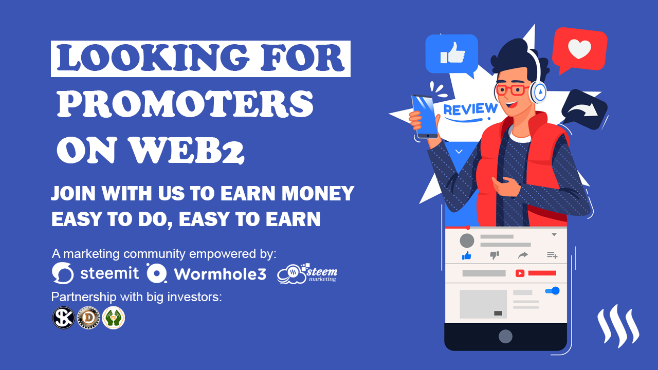 For influencers who want full access to support from the Steem Marketing community, we create opportunities. This initiative is a cooperative effort to find promoters for spreading the word about Steemit over the web 2 network.