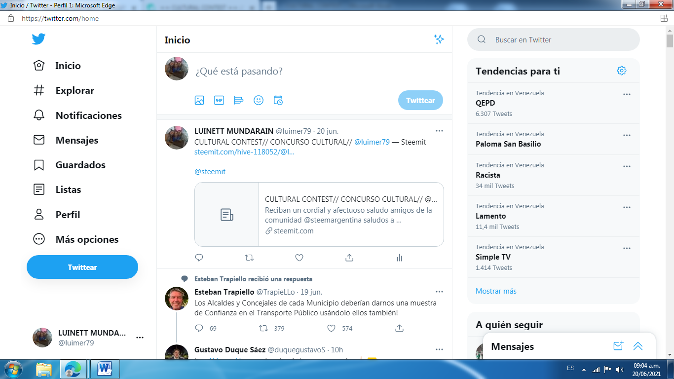 Aquí mi participación en Twitter: