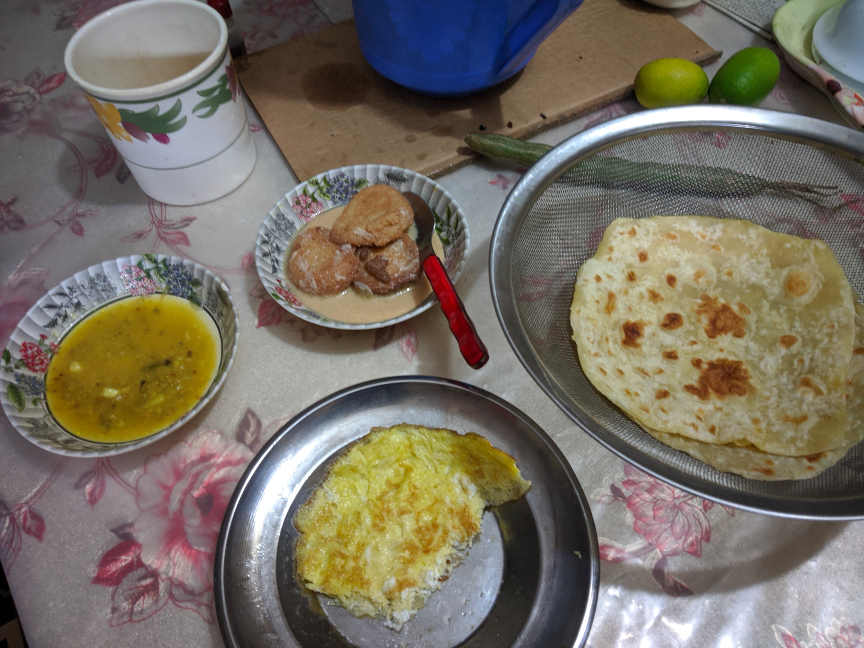 As always, I wake up in the morning, freshen up, perform Oju and performed Salat. But like every day, I did not sleep after the prayer. So I browse into my account for a while and I was not posted yesterday about my yesterday so I did yesterday's post this morning. Then I finished my breakfast at around 8 in the morning. This morning's breakfast had fried egg and pulses with parotta. Besides, Mom made some cakes yesterday and gave them to me to eat as you can see in the picture below.