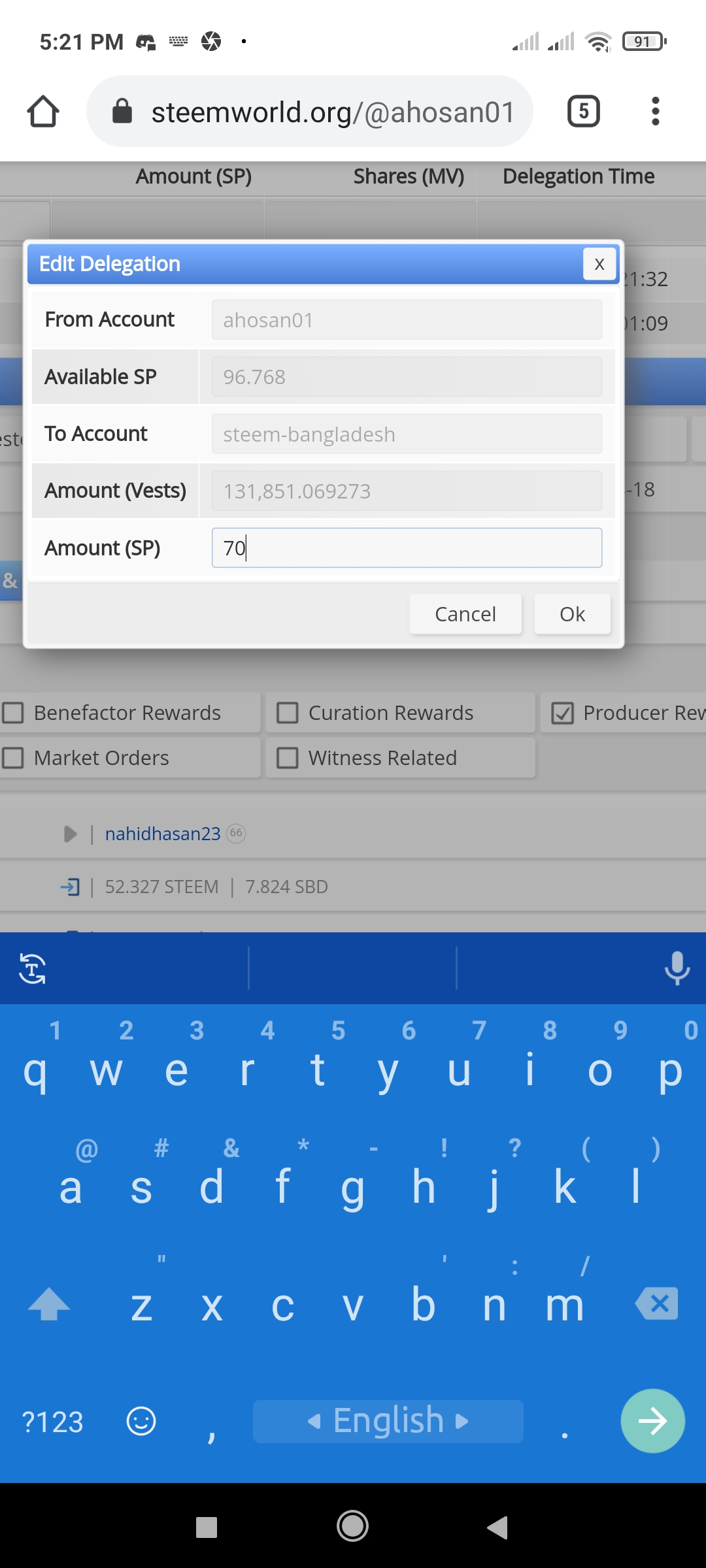 Brother, I was already delegating 20 sp. I made a delegation to increase 50 more. Please let me know if it has been confirmed.
