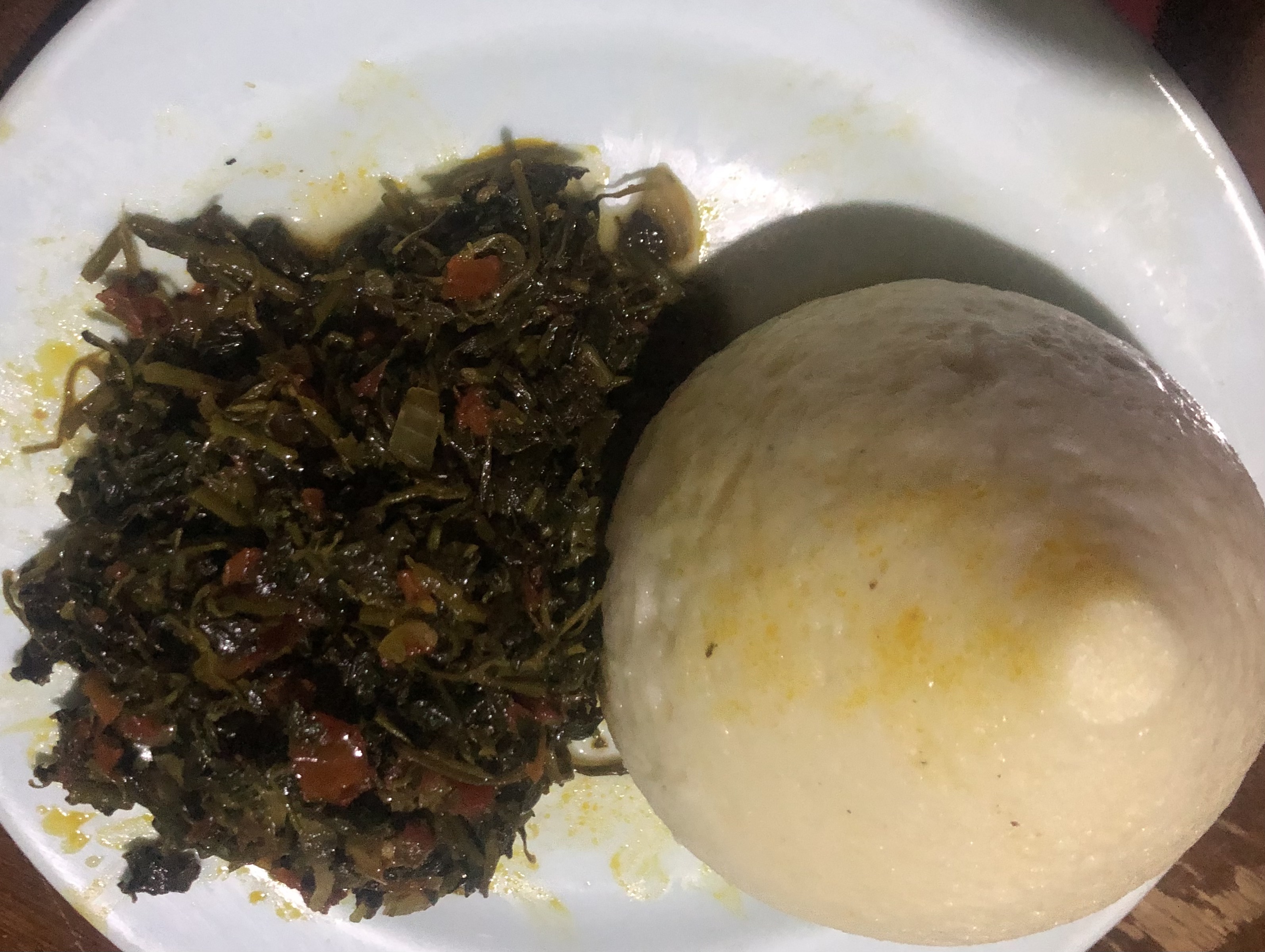 It was a boring game and I had to go to the kitchen to prepare our dinner. I prepared huckleberry and also cooked fufu corn. I had to cook all at once to serve time. I served the meal and had to feed my kids.