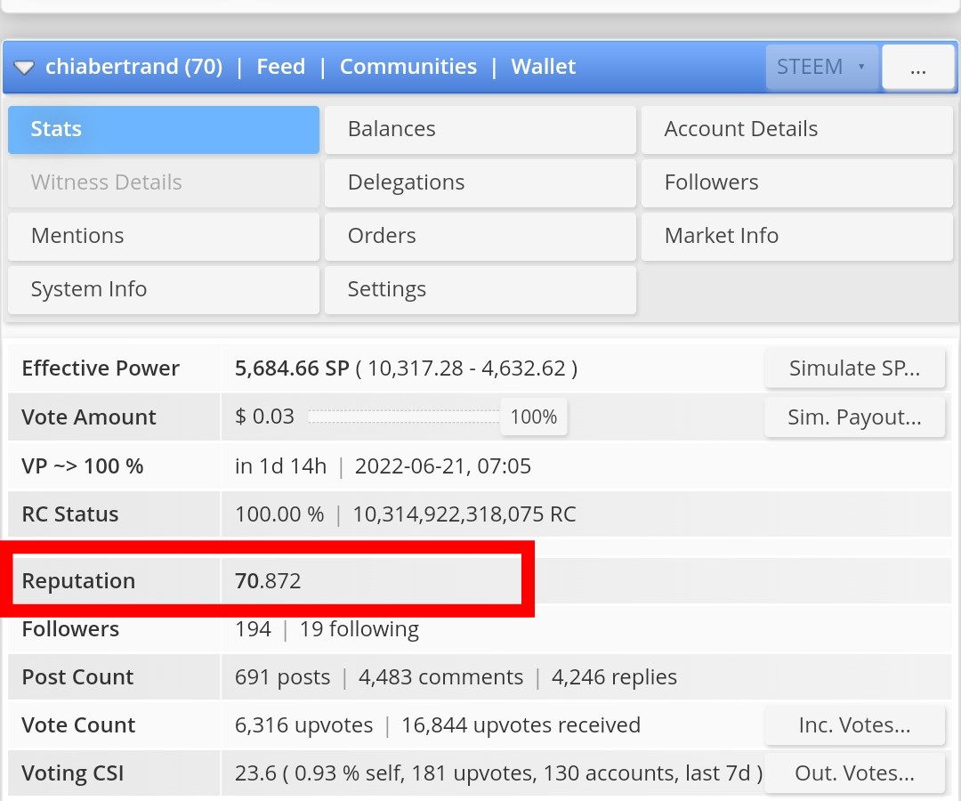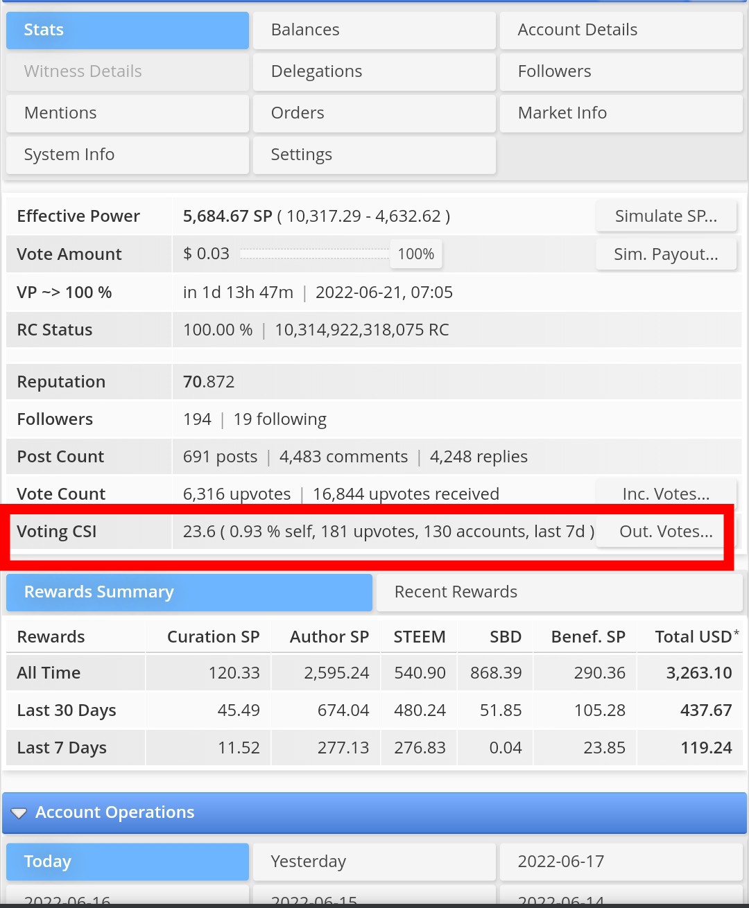 I have an overall CSI of 23.6 ( 0.93 % self, 181 upvotes, 130 accounts, last 7d )