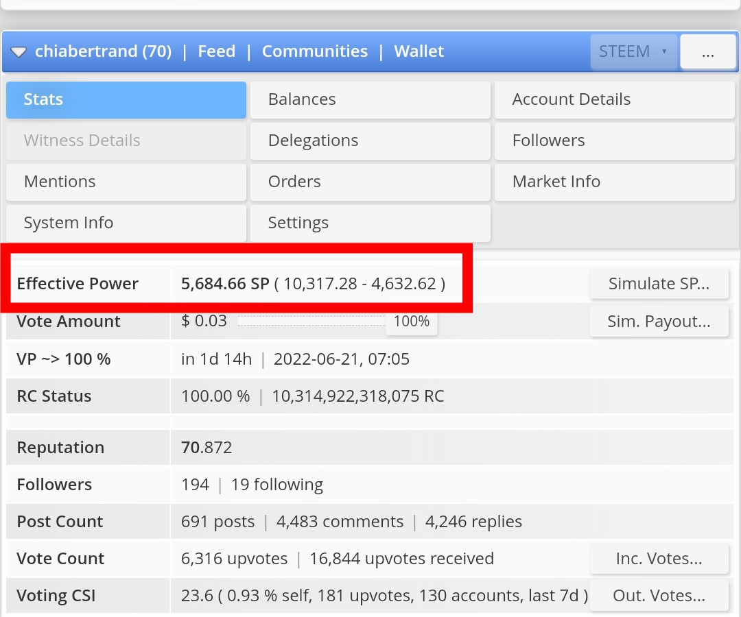 I have a total SP of 10,317.28 and I have delegated 4,632.62 to other communities