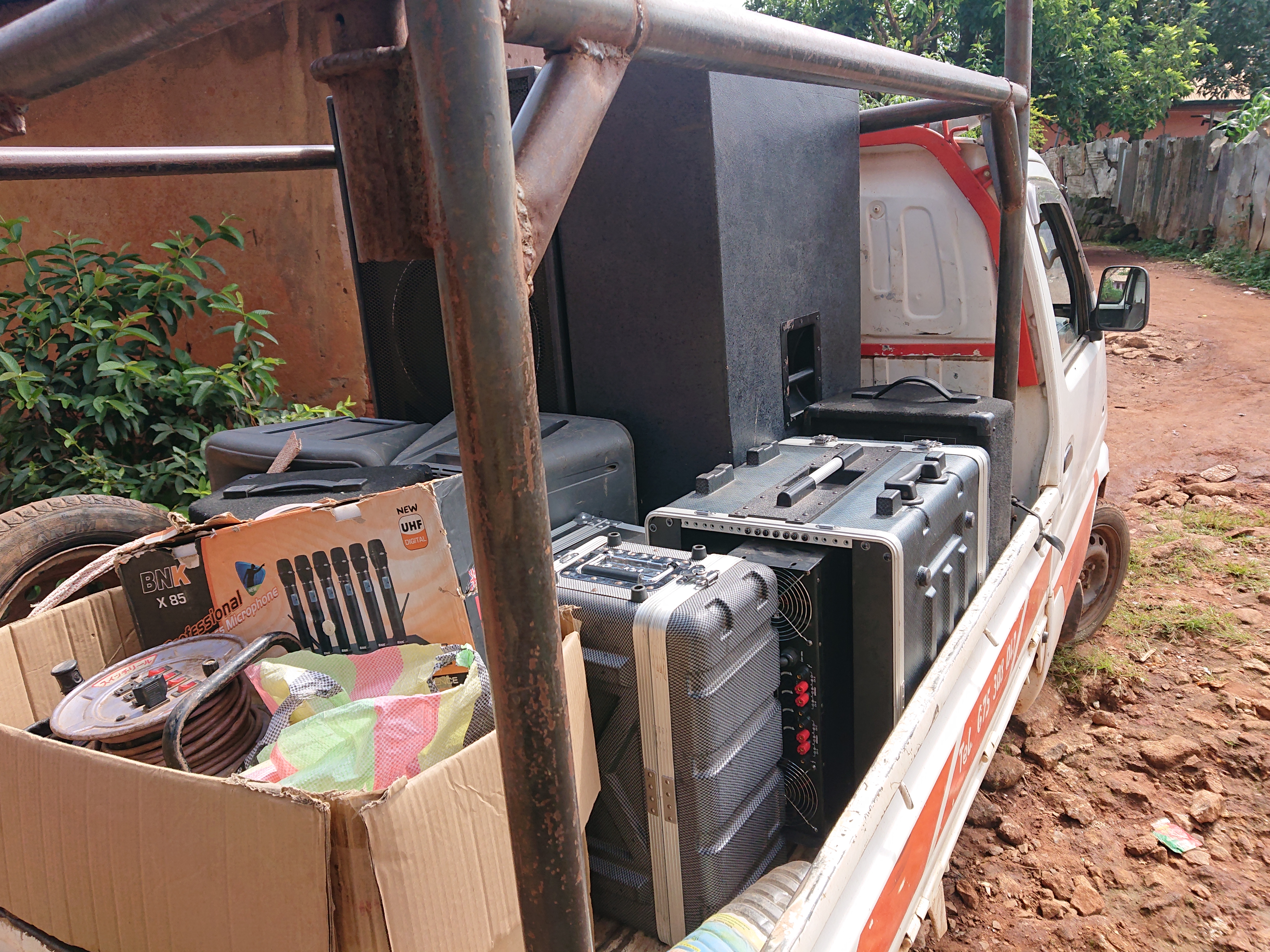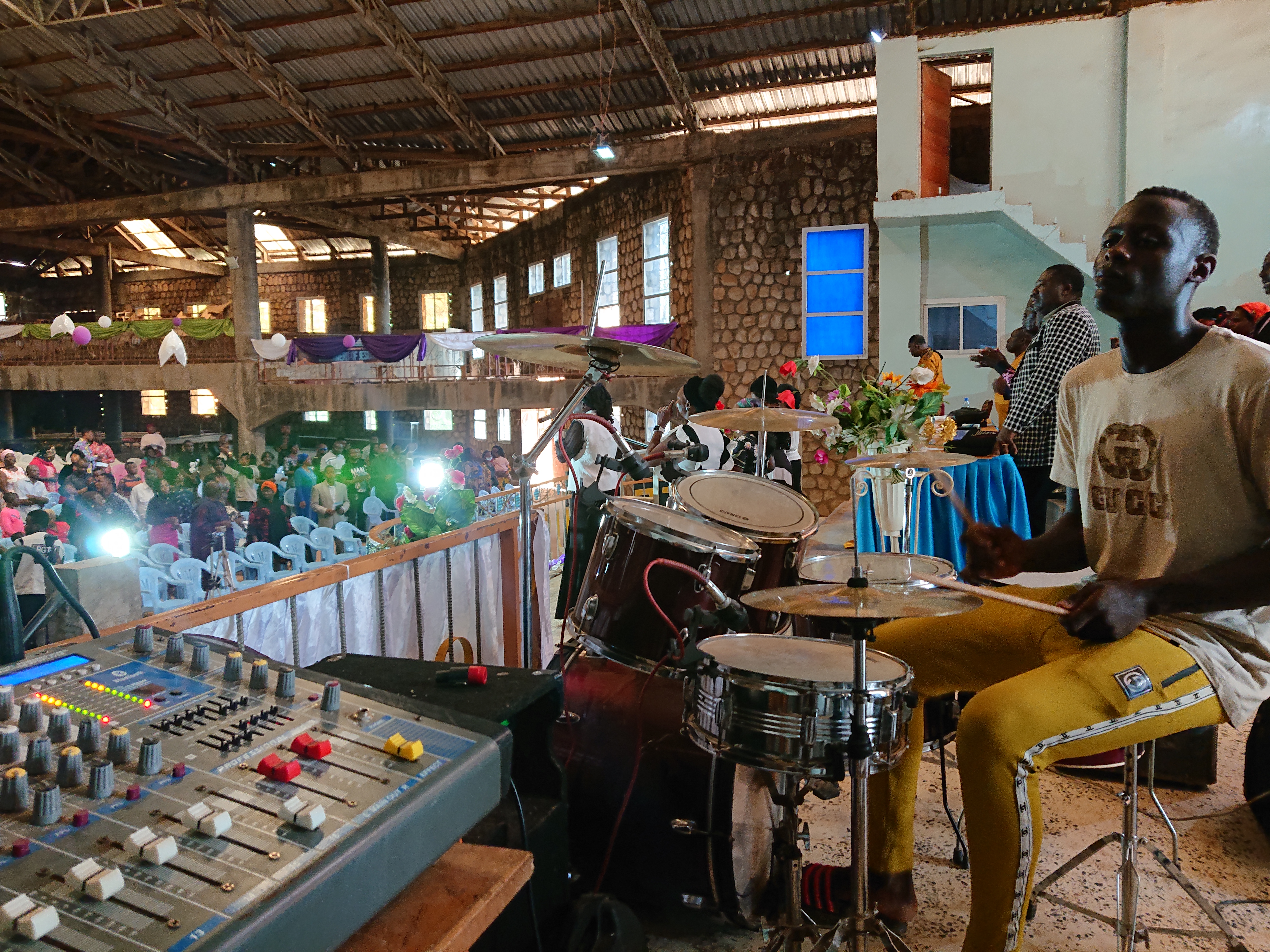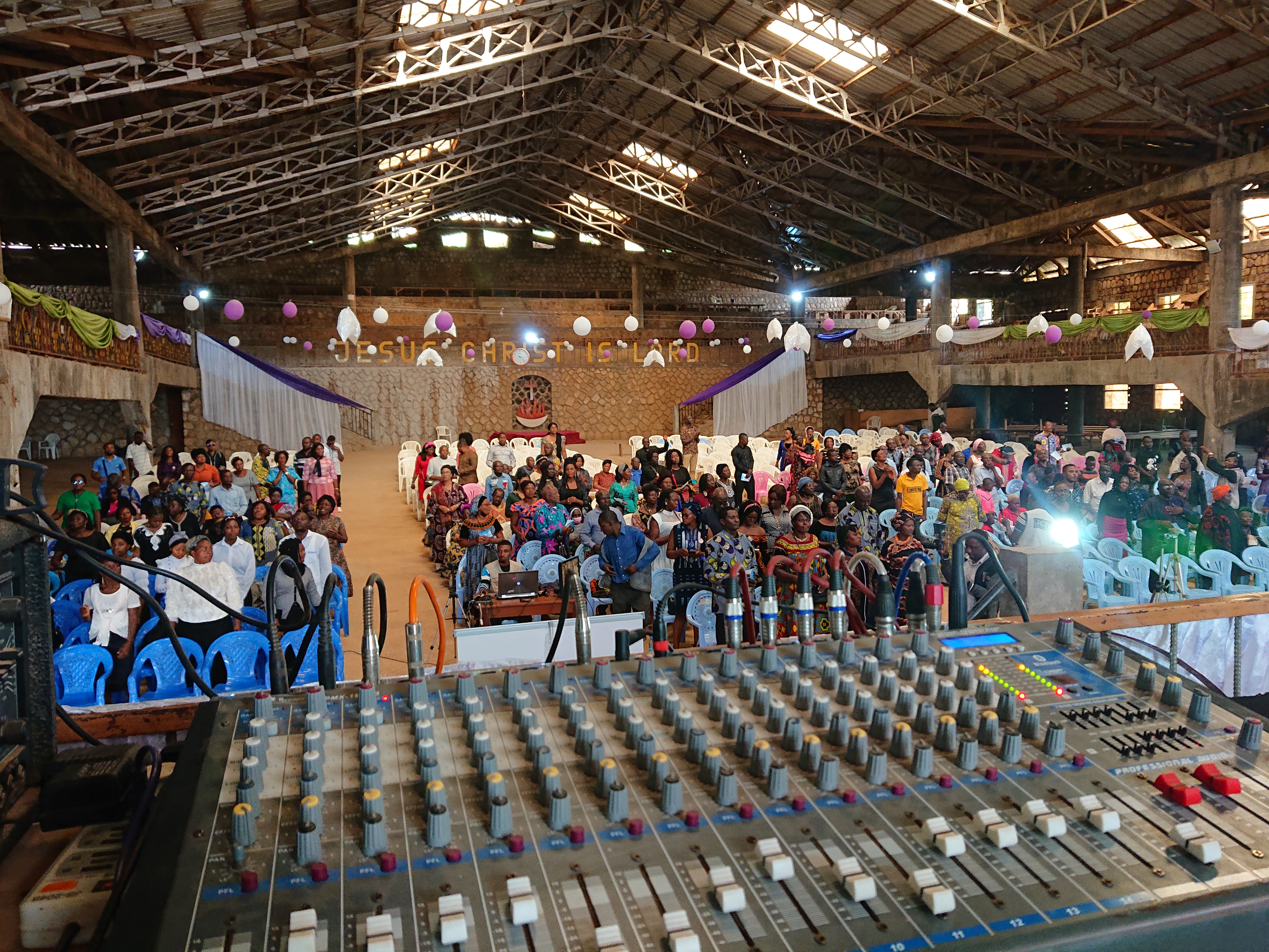 We arrived the event venue about 10:30am and offloaded everything. First of all we assessed the place and since it was a church, setting up everything was quite difficult as we had to disconnect thier on instruments and pack elsewhere before starting the setup, we did that and commenced with the setup.