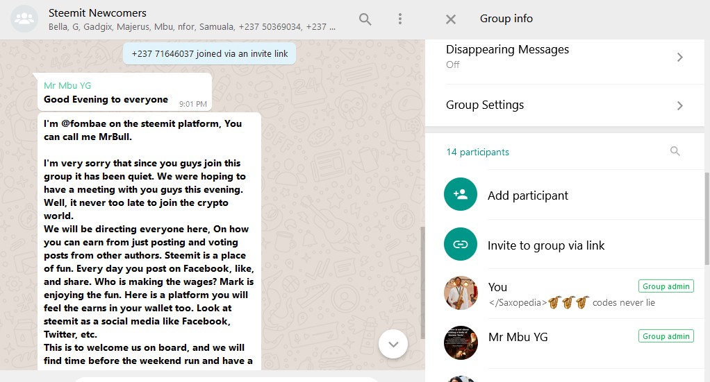 Couple with my daily job, i usually have 1 hour break everyday and i have set aside this time to mentor people who are interested in joining steemit online with @fombae as i have created a whatsapp group for such persons both far and near which we presently have about 12 persons we working with and hopefully, majority will see reasons to be steemians.