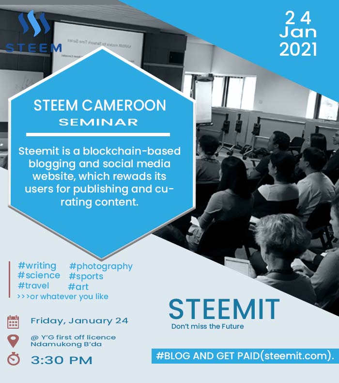 After taking a look at the number of steemians or people who are aware of such an amazing platform here in Cameroon, the first that came to my mind growing steem here in cameroon is organizing seminars and workshops to teach and educate people about steemit and how to make good use of steem tools and hopefully will do this from region to region here in Cameroon. I started this by organizing my first seminar here in Bamenda city on the 24th of this month. More details about the seminar here.
