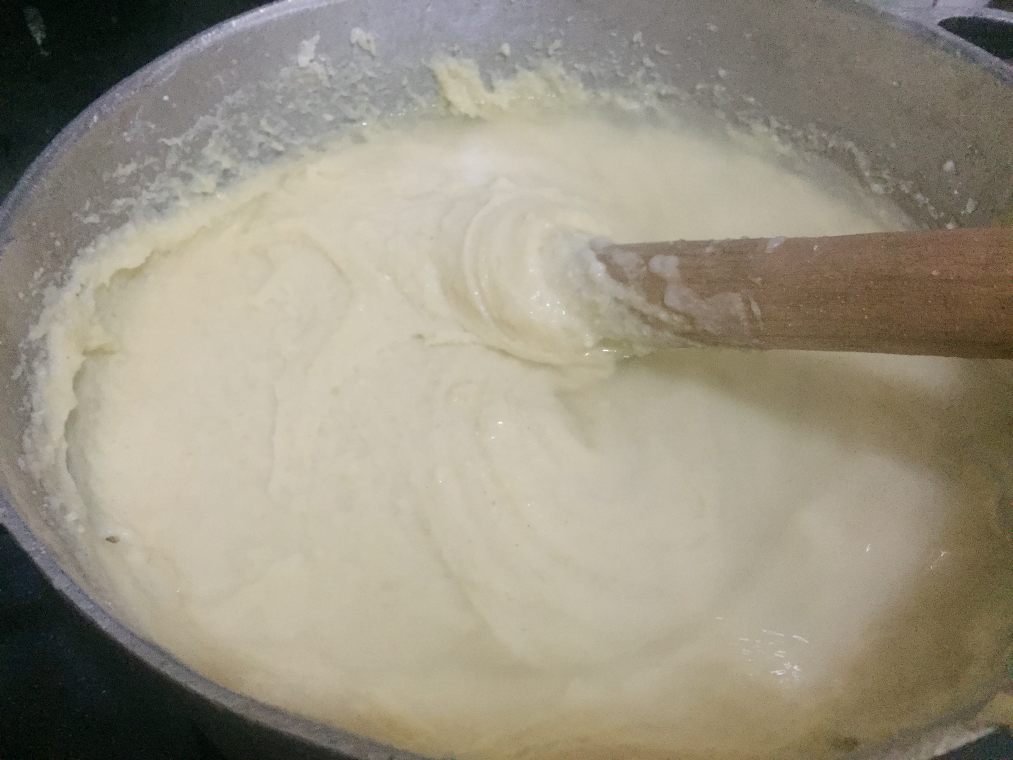 When the water is boiled, we reduce the water and leave a bit according to the quantity we want to prepare then put the small one already mixed in the pot.