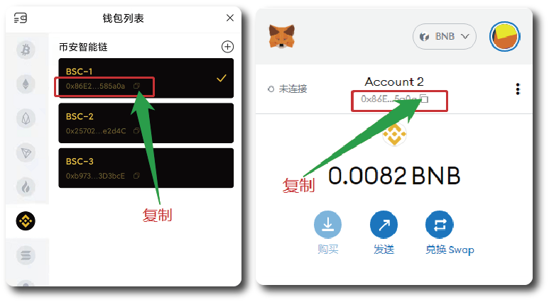 前往TP钱包或者MetaMask复制你的BSC账户地址。